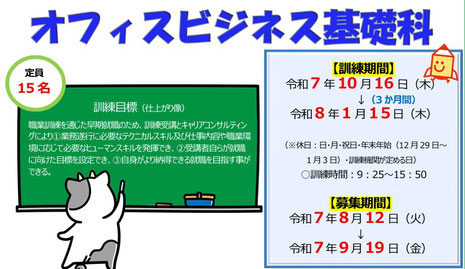 ◎求職者支援訓練(基礎コース)オフィス事務基礎科