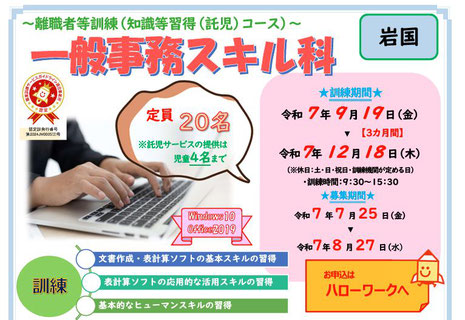 ◎離職者等訓練(知識等習得、託児付)オフィスビジネス科
