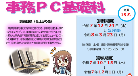 訓練科名:PC事務基礎科(3ヵ月コース)